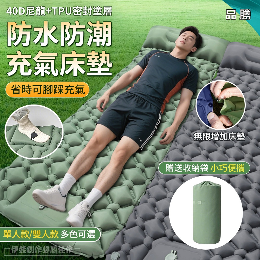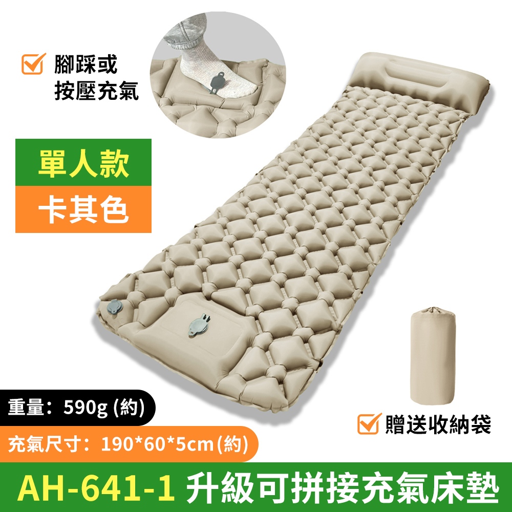 【台灣現貨😍可拼接】自動充氣床墊 車用床墊 加厚 防潮地墊 帳篷墊 野營墊 充氣睡墊 登山床墊 登山睡墊 單人充氣床墊