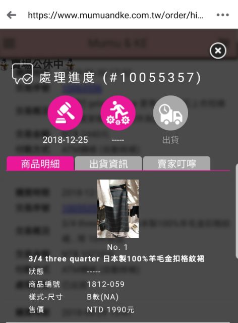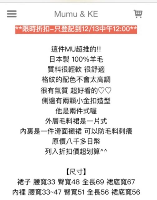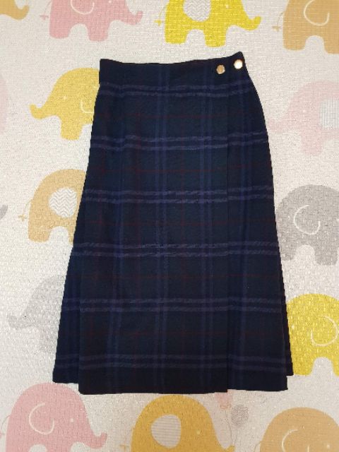 3/4 three quarter 日本製羊毛金釦格紋裙(深藍款)