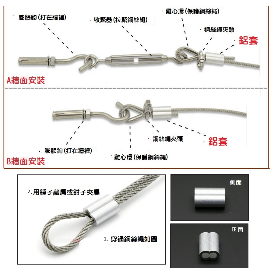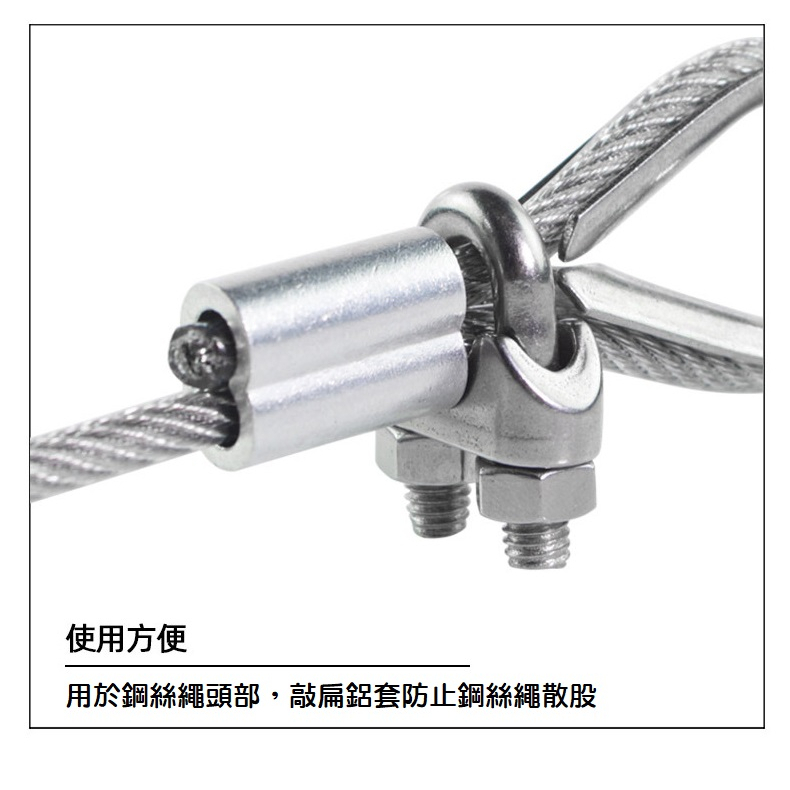 【現貨】2顆裝 鋼絲繩鋁套 8字鋁卡頭 1.5mm ~ 5mm 鋁夾 鋼絲繩夾頭 鋁合金頭 鋼索夾 鋁束 壓頭