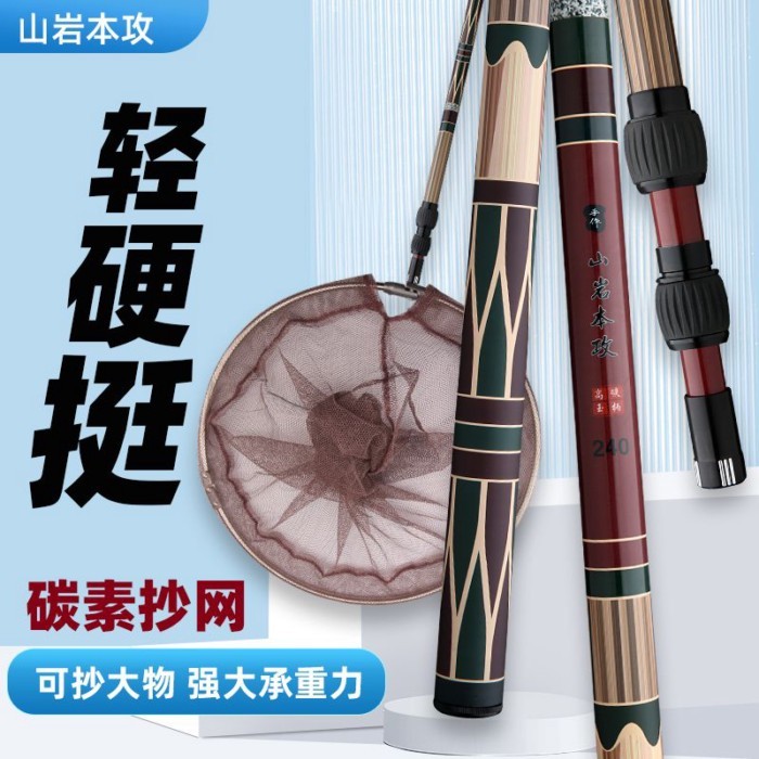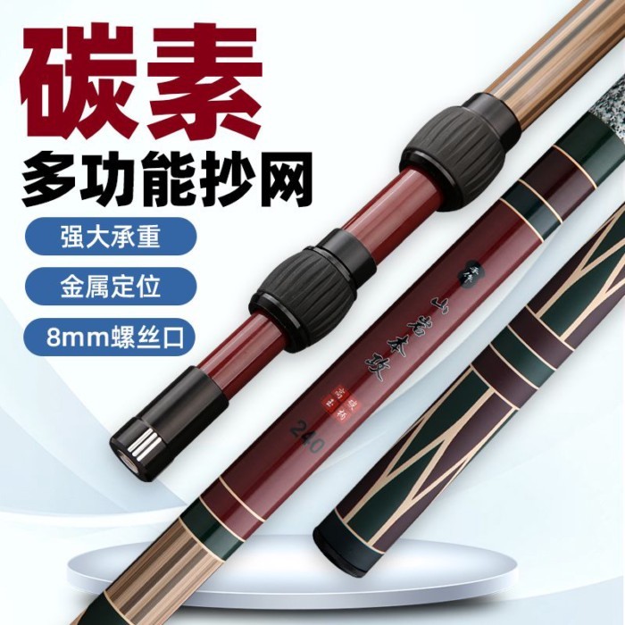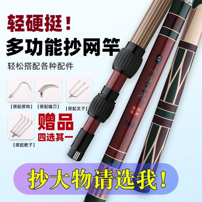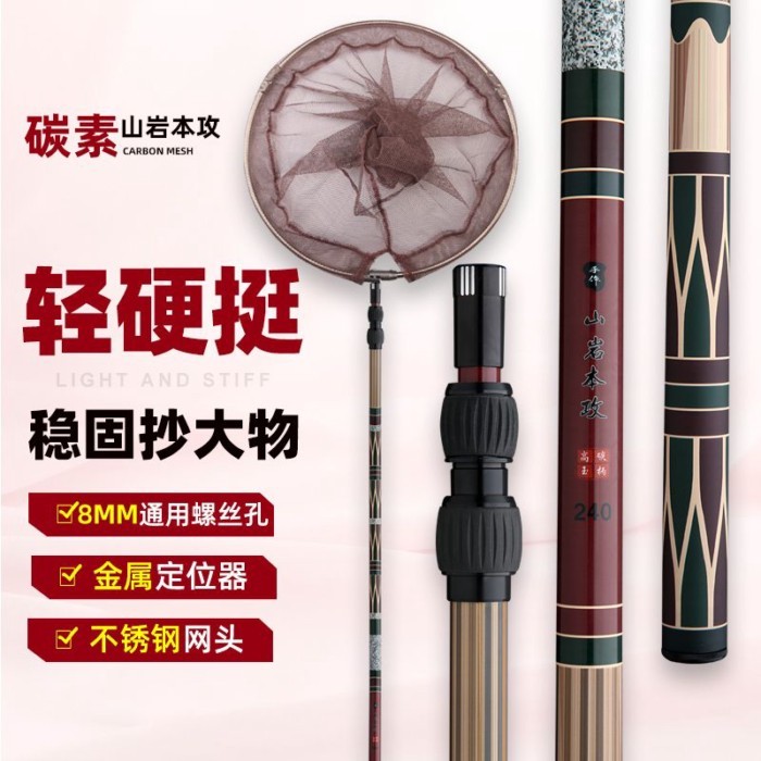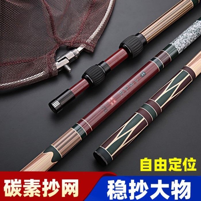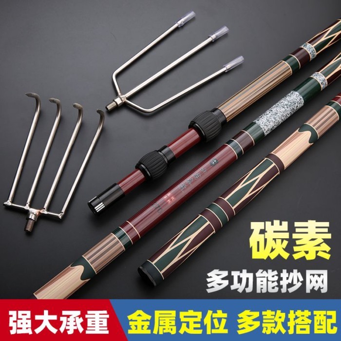 米多多漁具♡ 釣魚抄網竿碳素超輕伸縮桿超硬大物抄網桿全套裝撈魚折疊網兜組合