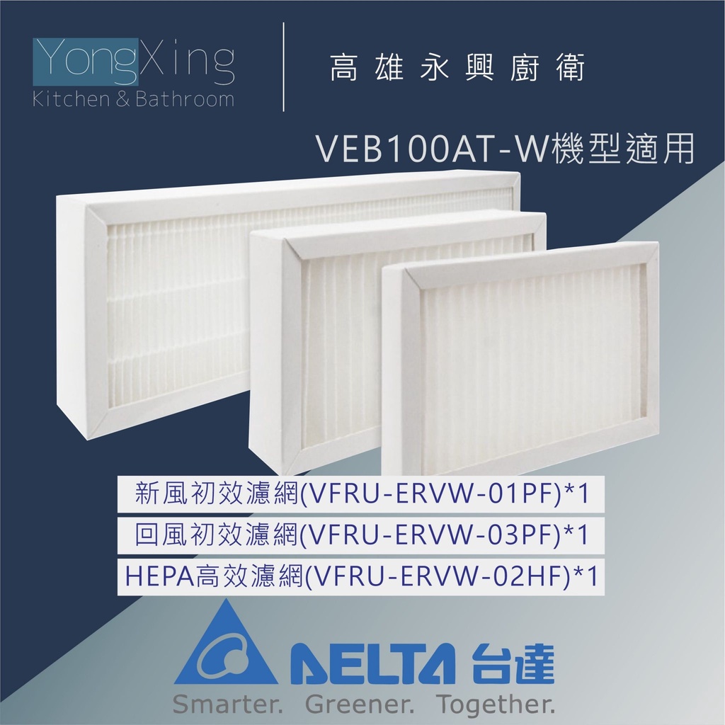 【台達電子】PM2.5壁掛式全熱交換器雙重高效濾網-初效+HEPA PM2.5濾網3件一組(VEB100AT-W用)