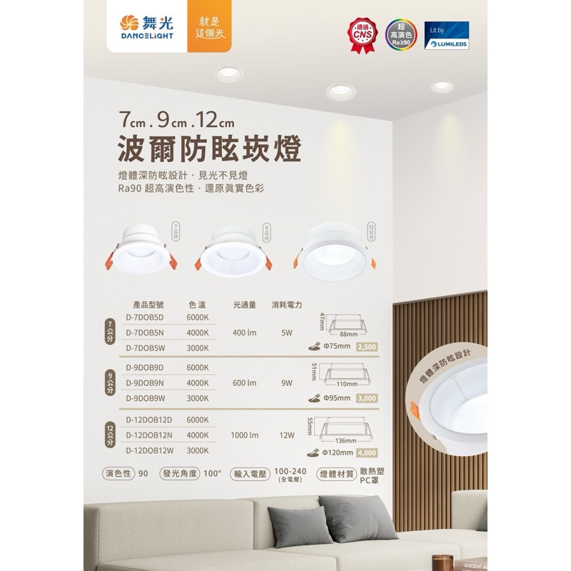 舞光 LED 7公分 波爾防眩崁燈 D-7DOSB5D 防炫光天花燈 7.5公分 9公分 12公分 高雄永興照明廚衛全熱