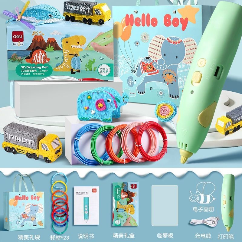 非常有趣的兒童3D打印筆益智玩具得力兒童3d立體打印筆六一低溫智能手工3d打印全套專業級學習禮物