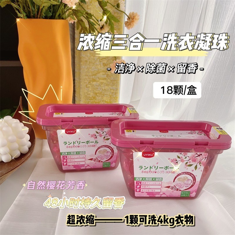 《現貨台灣出貨》🔥三葉草櫻花洗衣球3合1(一盒18顆) 三效合一洗衣膠囊 洗衣球 除蟎抗菌增柔 洗衣凝膠 洗衣 洗衣珠