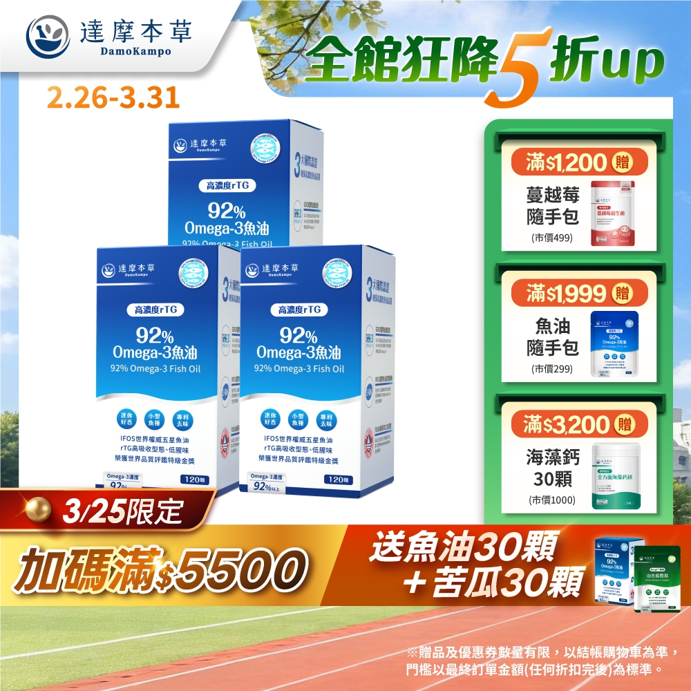 【達摩本草】92% Omega-3 rTG高濃度魚油EX x3盒(120顆/盒)