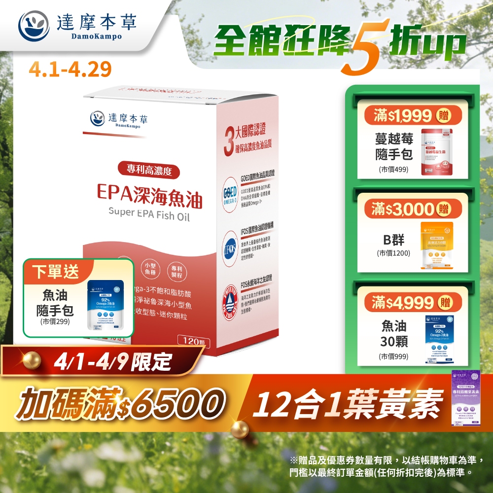 【達摩本草】高EPA 90%專利深海魚油x1/3/5盒(120顆/盒)