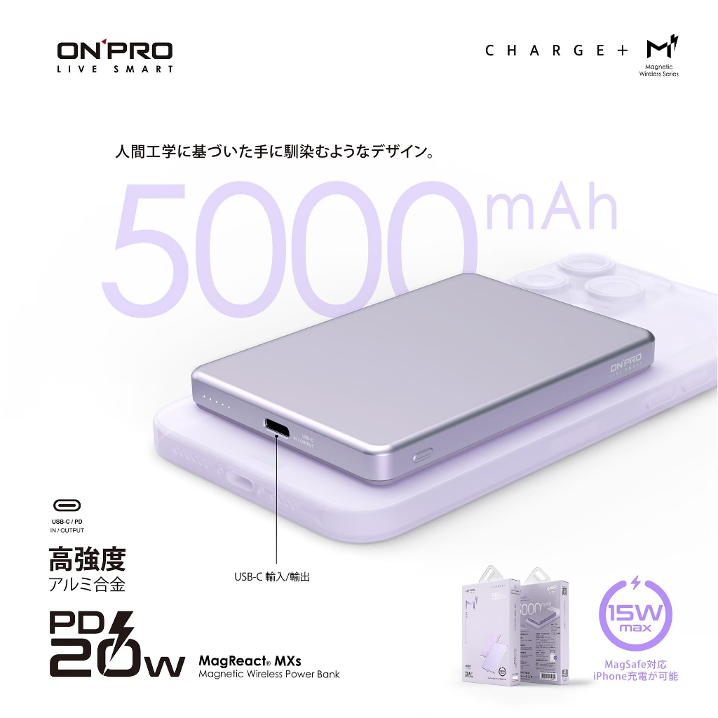 ONPRO MagReact MXs 5000mAh薄型磁吸無線急速行動電源 Magsafe磁吸行動電源【Wh已標示】