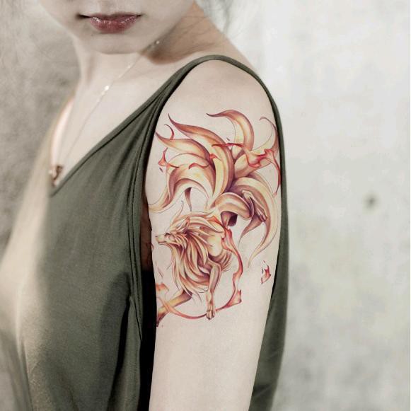 HM免運🎈紋身貼紙 刺青貼紙 紋身貼 遮刺青 刺青貼 防水 持久 九尾狐紋身貼防水女大腿小腿九尾狐貍狐仙手臂刺青男仿真