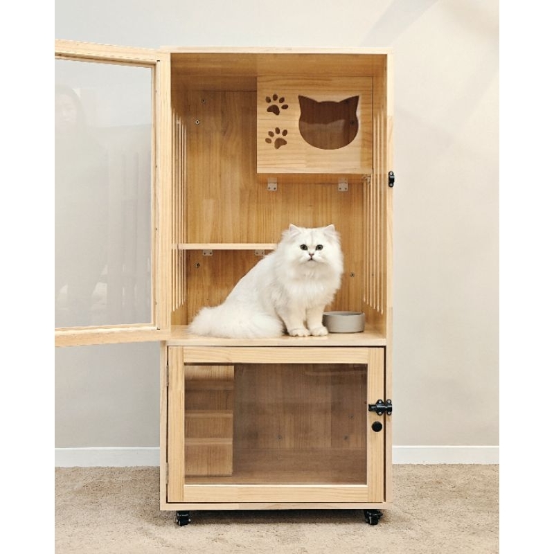 豪華三層貓別墅 | 實木耐用&滾輪移動 | 避免貓咪打架的分隔空間 | 貓咪安心的休息空間 | 簡易清理設計