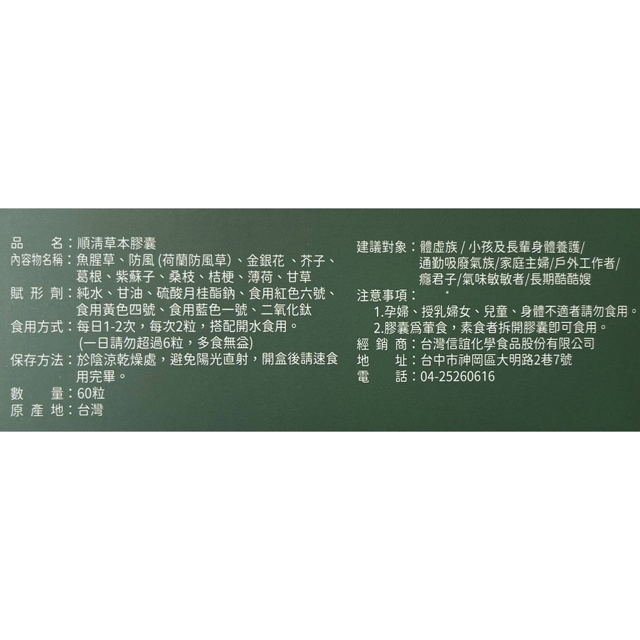 防疫升級 順清草本膠囊 60粒/盒 特別添加魚腥草 金銀花