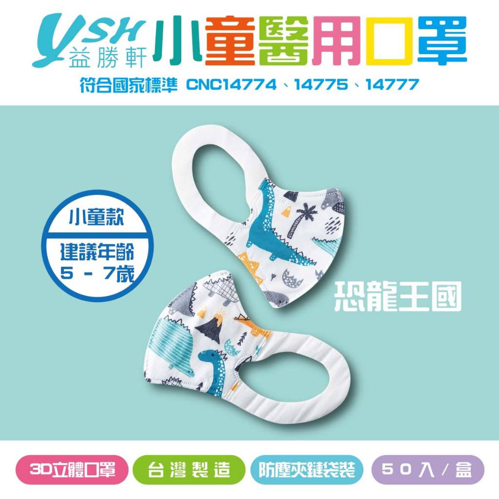 益勝軒 小童3D立體醫療口罩超彈力耳帶 4~7歲 50入/盒 防塵夾鏈袋包裝 MD雙鋼印 MIT台灣製