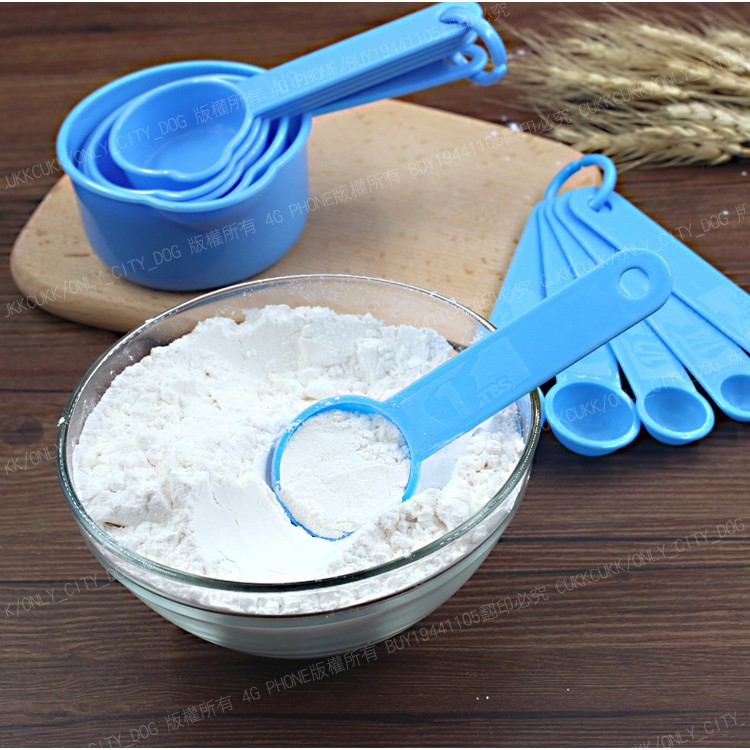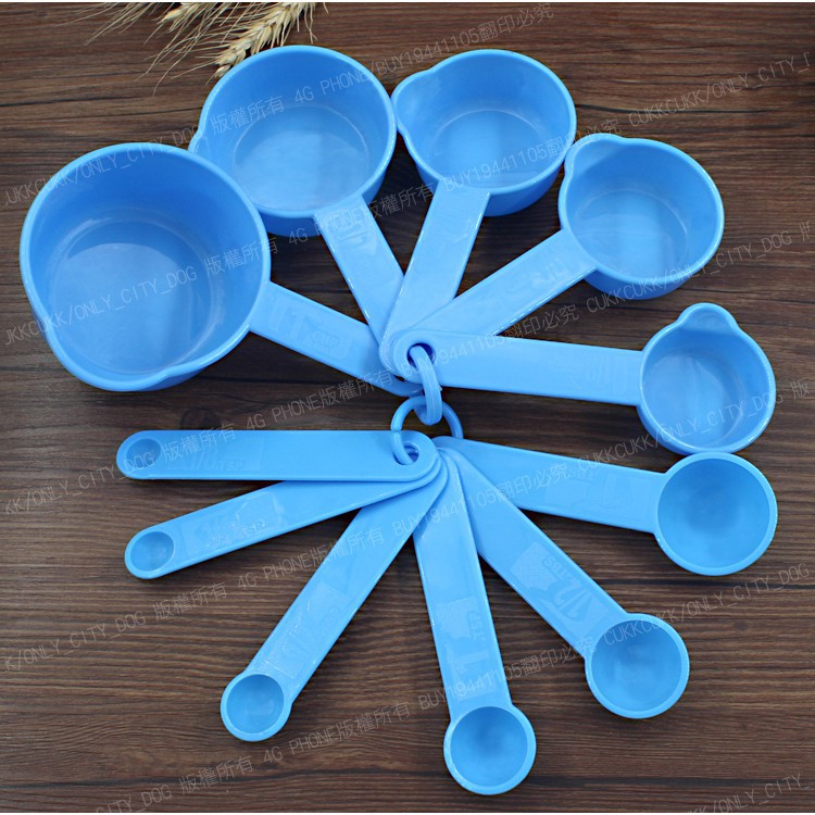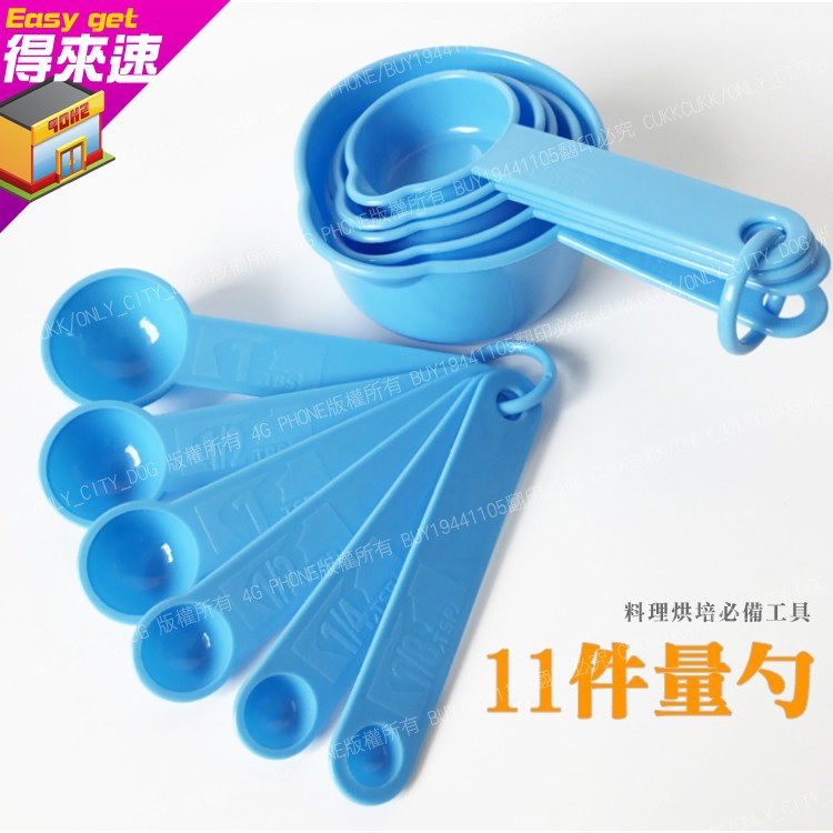 【測量工具】11件套帶刻度塑膠量勺 可掛 帶刻度 量杯 量匙 量勺 茶匙 湯匙 計量 烘焙工具 廚房 ~得來速