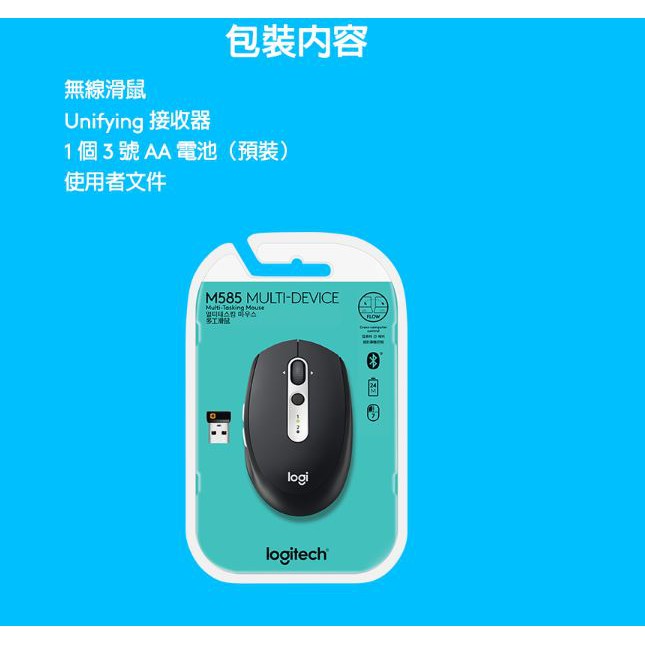 全新羅技Logitech M585 多工無線滑鼠(台灣公司貨-石墨黑)