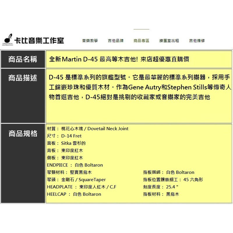 【卡比音樂工作室】-實體店面- 全新2024年Martin D-45 高階民謠吉他