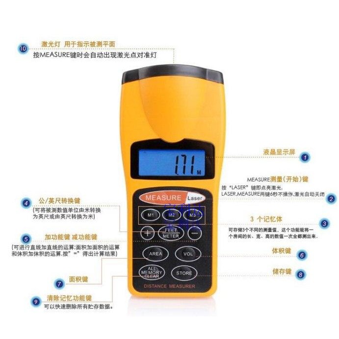 雷射測距儀 鐳射測距儀 超聲波 測距器 無線電子尺 超音波 手持式紅外線測距儀 多功能 測量工具 CP3007