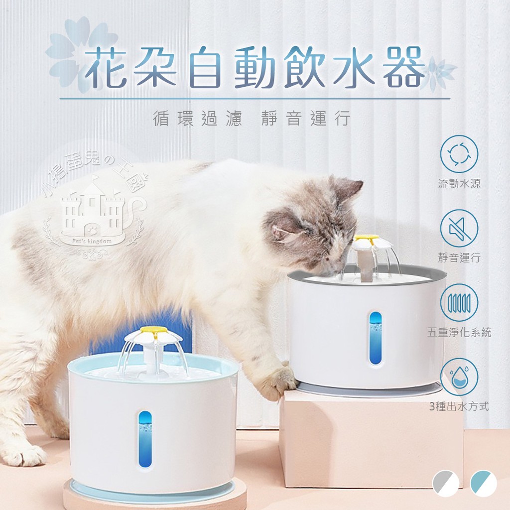 【小搗蛋鬼の王國】【20%蝦幣短影音】寵物飲水器 花朵自動飲水器 LED自動斷電 過濾活氧喝水器 電動噴泉飲水機 寵物貓