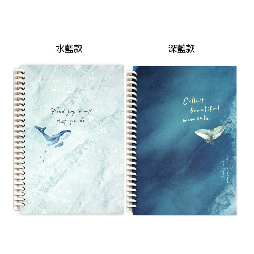 鯨魚系列 26孔拖拉夾本【九乘九文具】水藍 深藍 拖拉夾本 學生筆記 書寫記錄 26孔筆記 鯨魚 插圖筆記本 深海