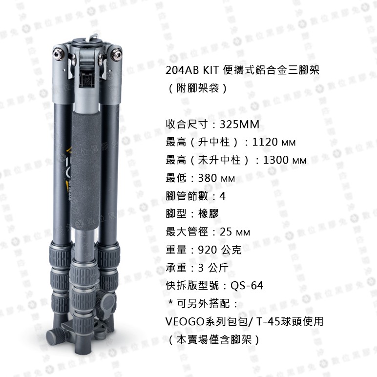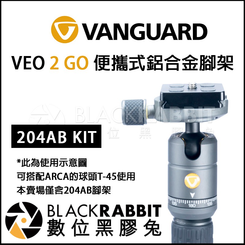 【 VANGUARD 精嘉 VEO 2GO 204AB KIT 便攜式 鋁合金 三腳架 】 數位黑膠兔