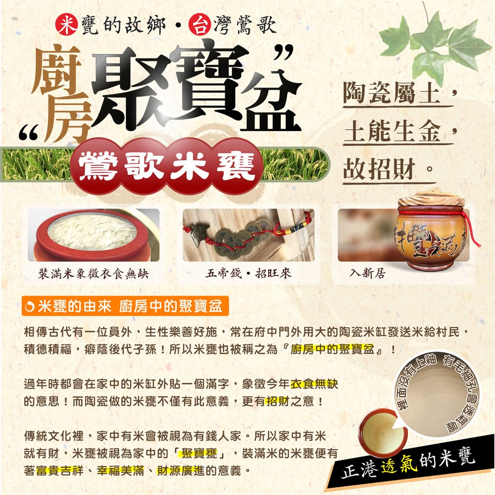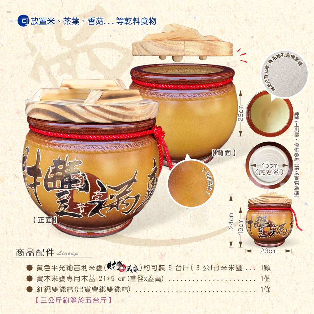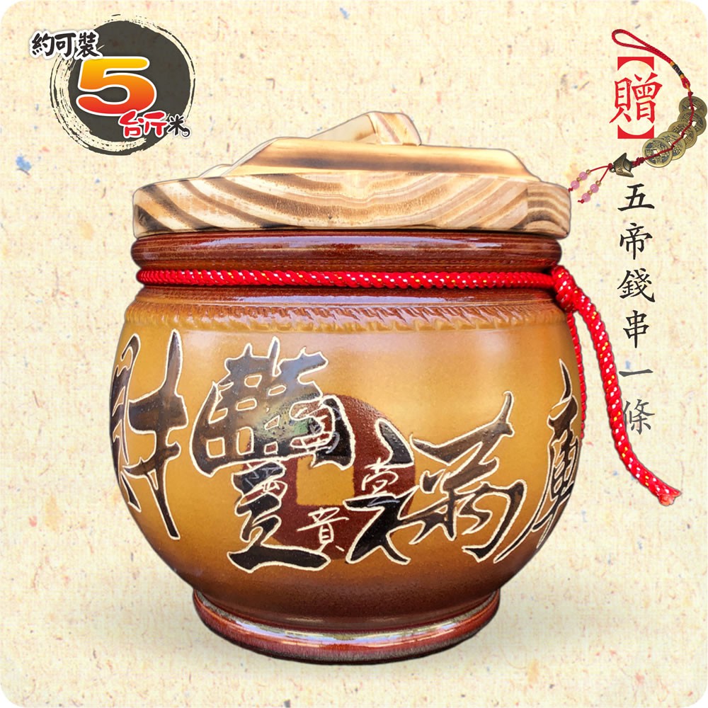 【唐楓藝品米甕】黃平光釉(財豐滿庫)米甕 | 約可裝 5 台斤米
