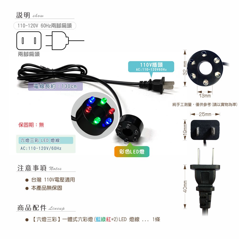 【唐楓藝品耗材】【六燈三彩LED燈】一體式無分接 彩色(藍綠紅)LED燈 線(110V電壓)