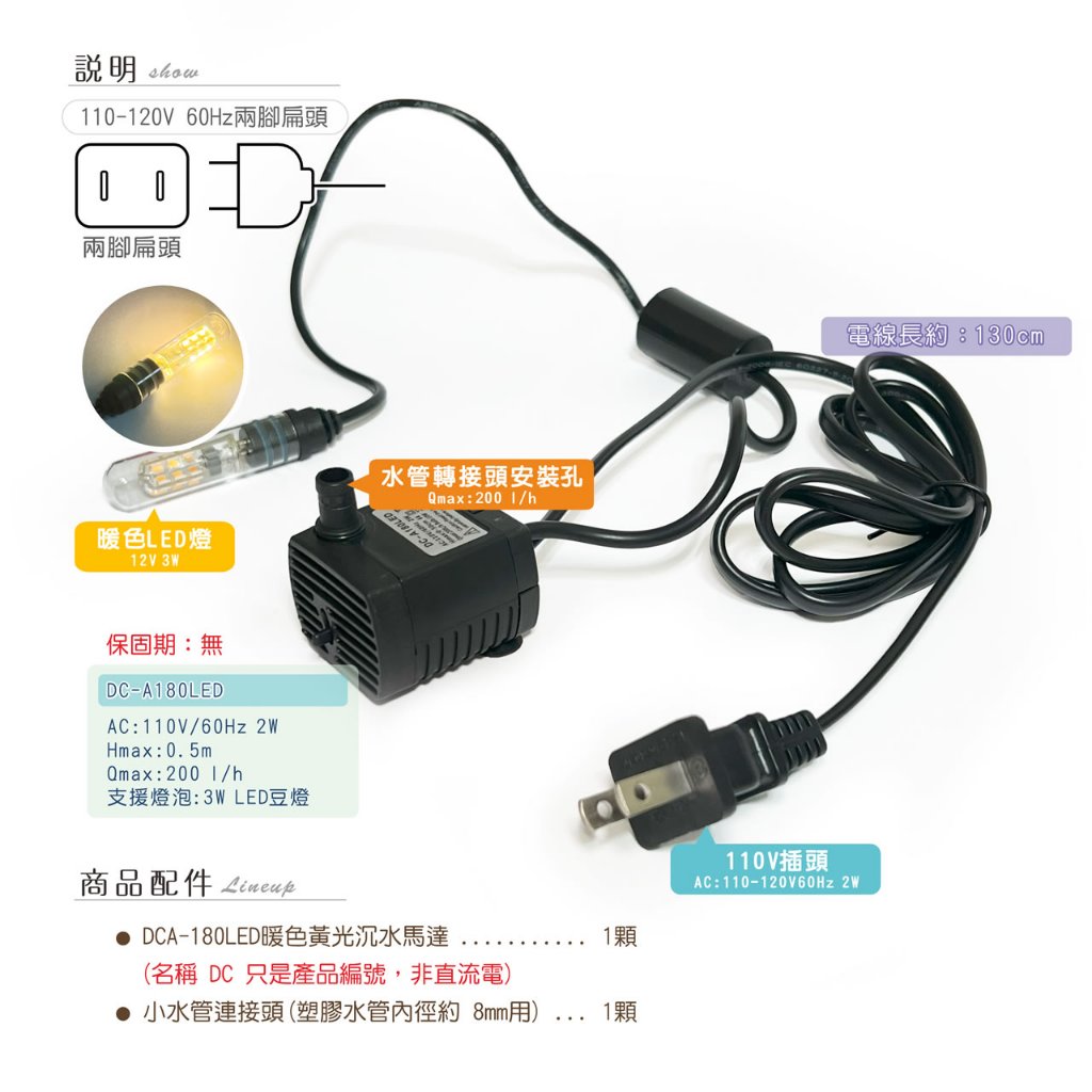 【唐楓耗材】DCA180LED (Qmax200L/H) 沉水馬達