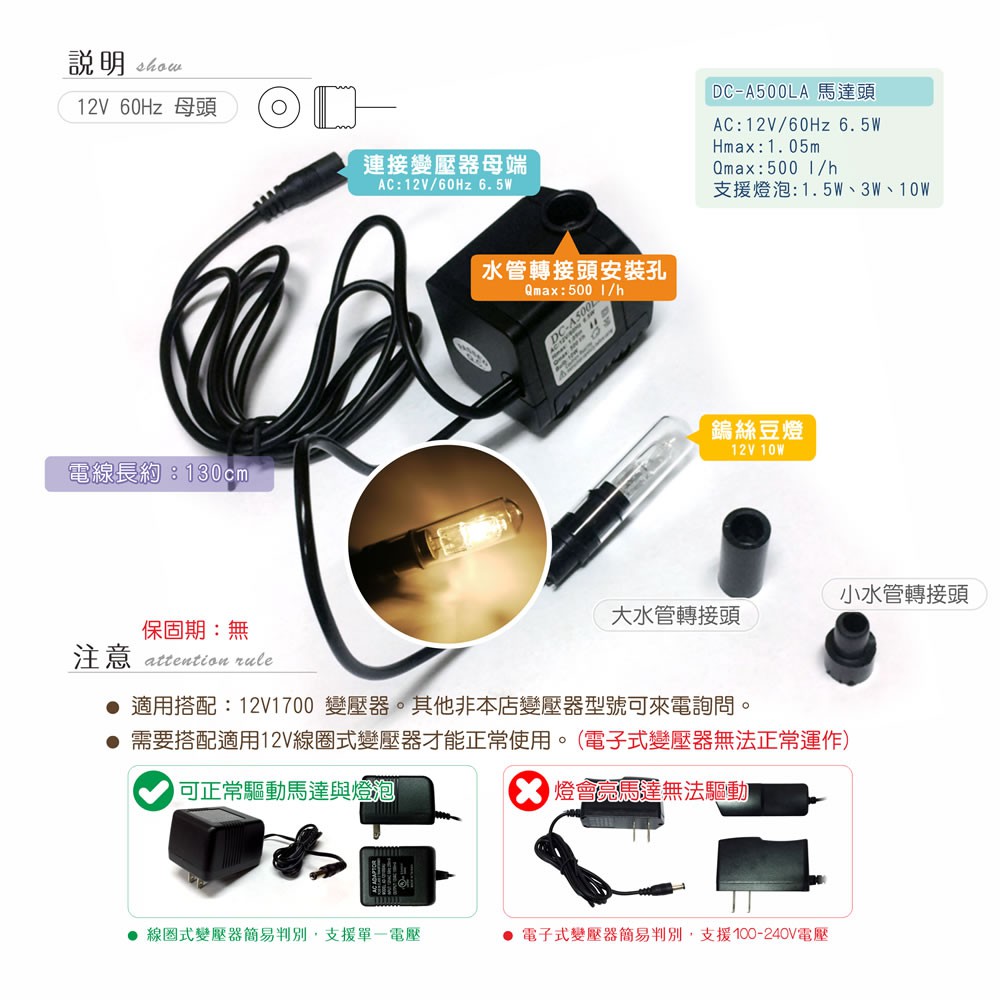 【唐楓藝品耗材零件】(有燈)沉水馬達DC-A500LA(不含變壓器)