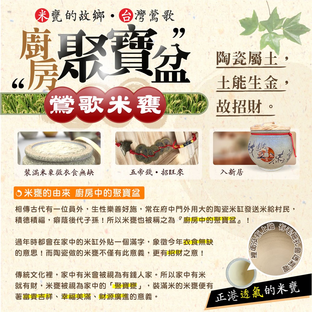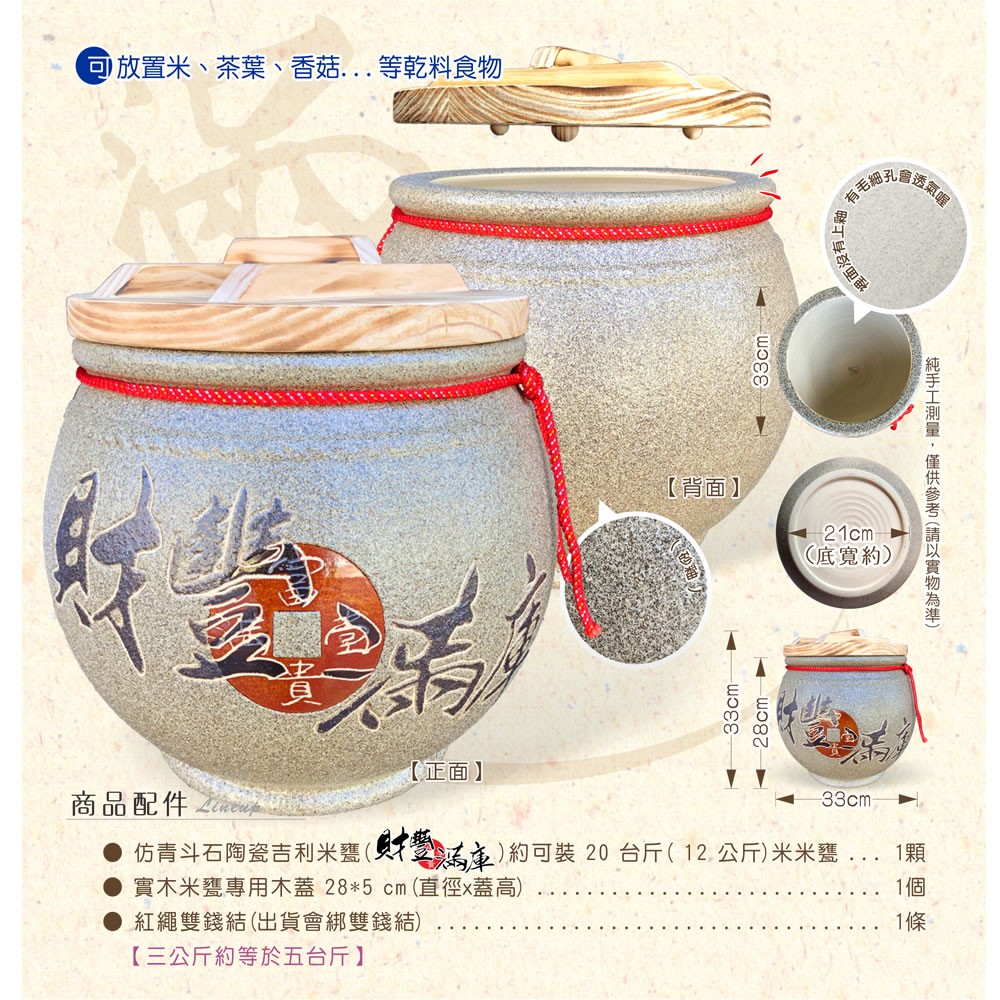 【唐楓藝品米甕】青斗砂釉(財豐滿庫)吉利米甕 | 約裝 20 台斤米