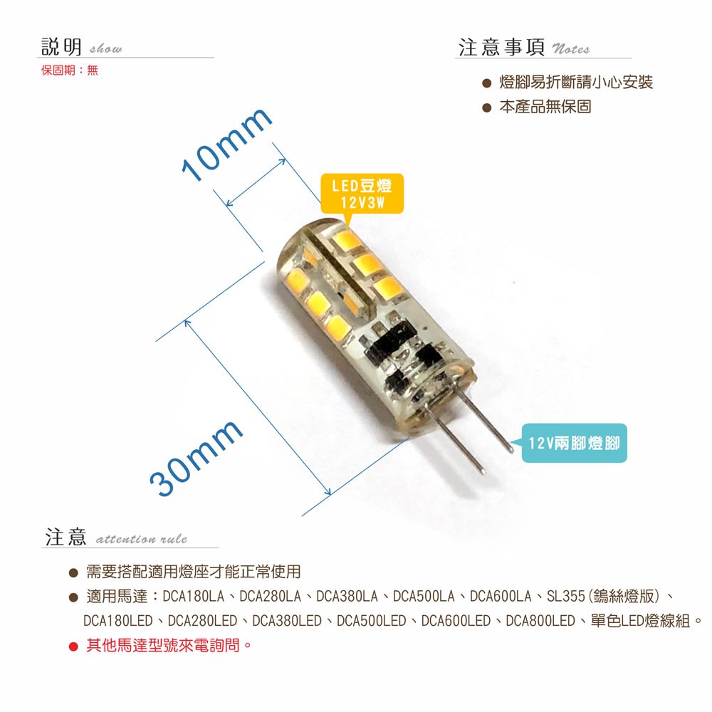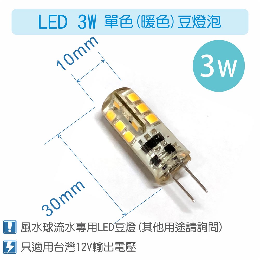 【唐楓藝品耗材零件】沉水馬達專用LED豆燈燈泡(12V3W LED版) 12VLED-G4 Lamp - 單顆