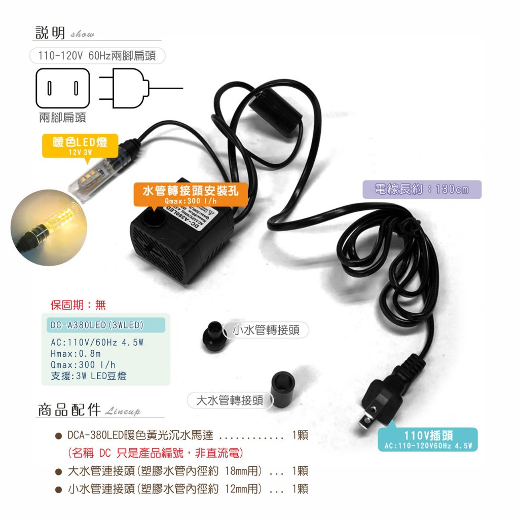 【唐楓耗材】DCA380LED (Qmax300L/H) 沉水馬達