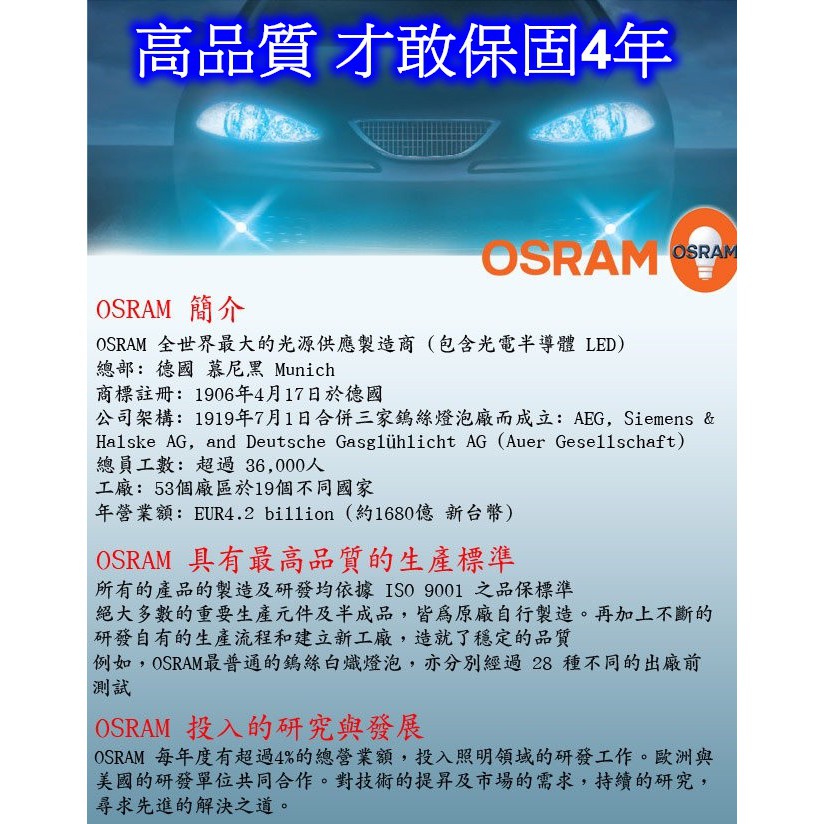 [[瘋馬車鋪]]現貨板橋 保固4年 正廠OSRAM原廠HID~D1S D2S D3S D4S D2R D4R D8S