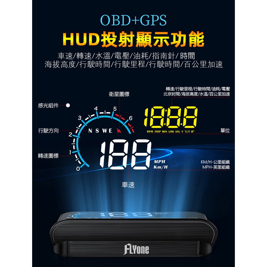 FLYone M12 OBD2/GPS 雙系統多功能汽車抬頭顯示器