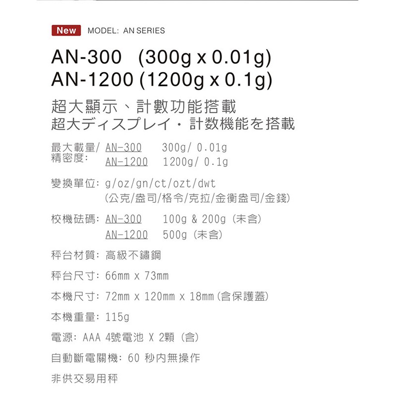 廣田牌電子秤/珠寶秤/口袋秤/計數秤/咖啡秤1200g x 0.1g (AN-1200)