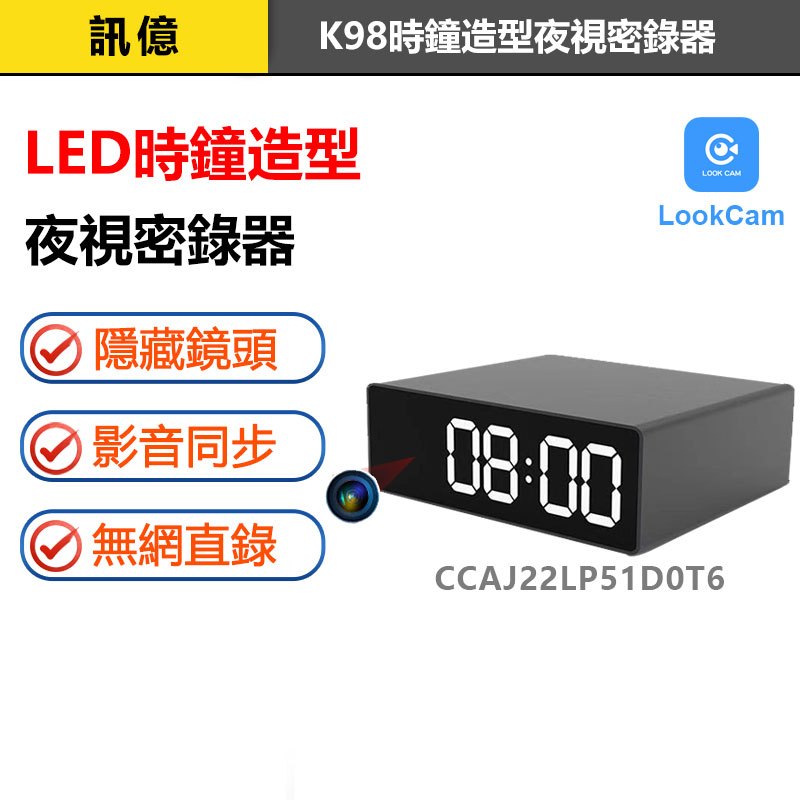 訊億👍抓賊神器 LED時鐘造型夜視監視器K98【160度超廣+夜視 鋁合金】LOOKCAM密錄器 遠程攝影機