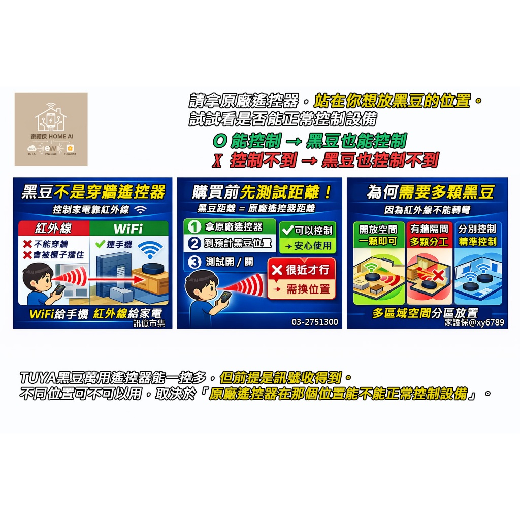 訊億✨AI冷氣省電無須改裝 APP智能學習遙控器 黑豆【適用台灣99%家電紅外線遙控器】TUYA手機定時預約 遠端遙控