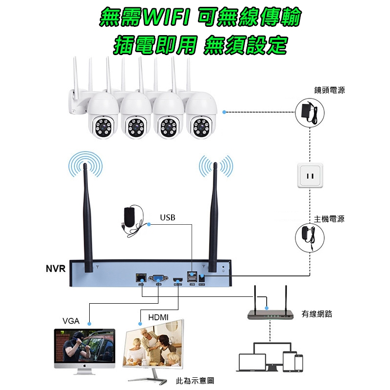 訊億🔥免安裝 無線600坪16路NVR監視組【隨插即用 夜間全彩 錄音說話】易視雲APP遠端錄影機
