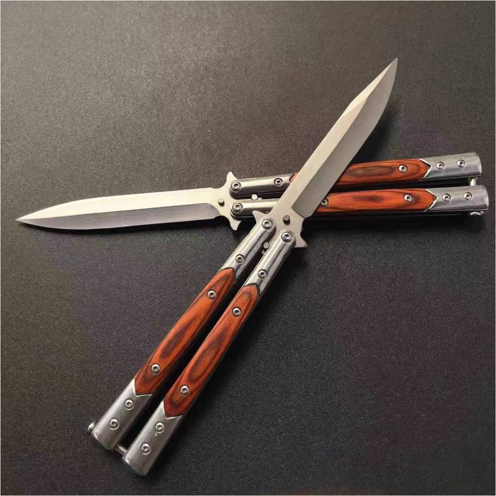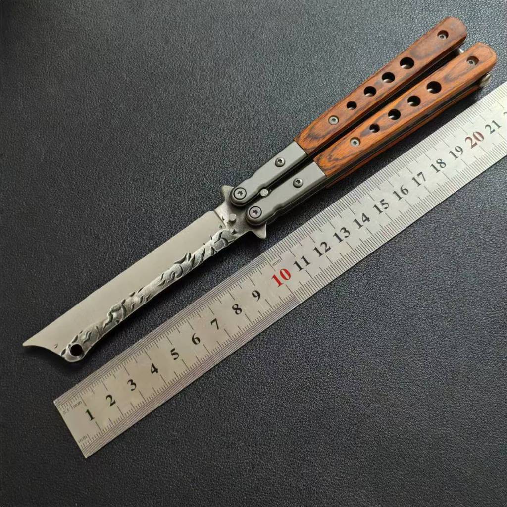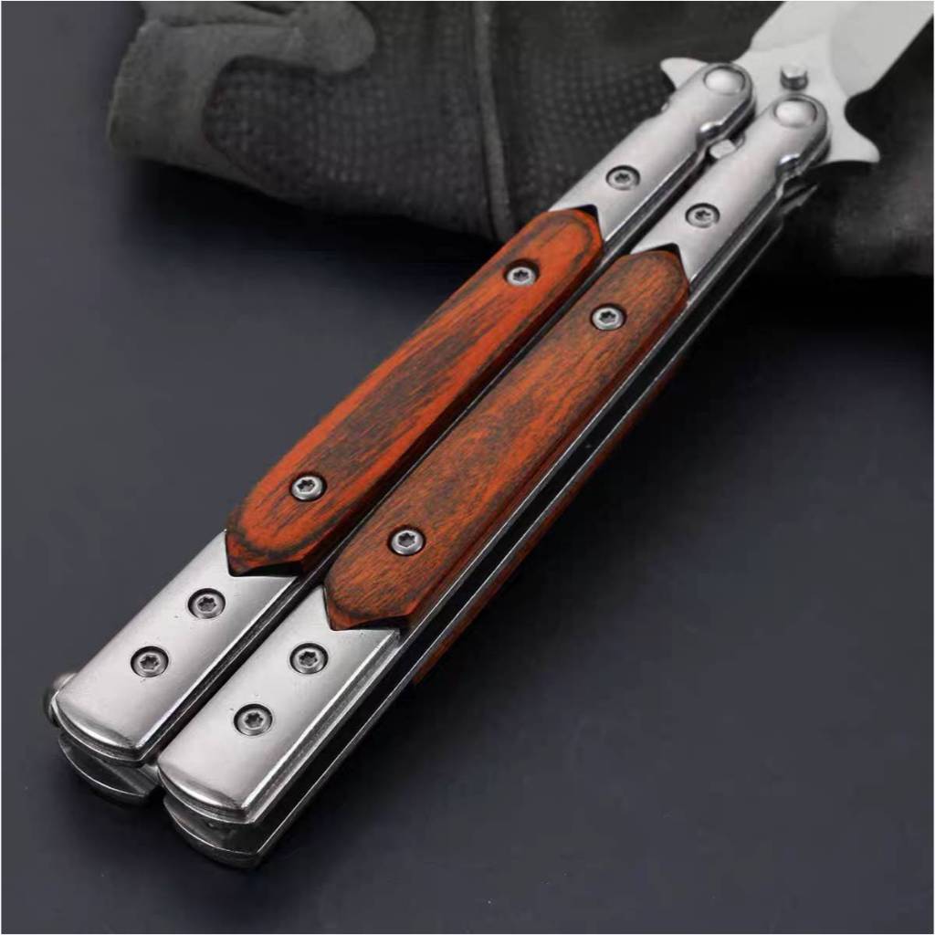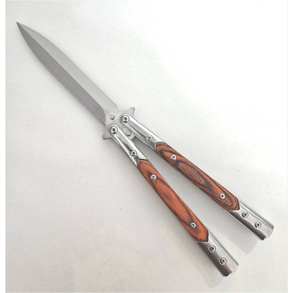 (藏鋒)蝴蝶刀 蝴蝶刀 甩刀 折疊刀 練習刀 未開刃 鑲木柄 鑲嵌木柄 彩木柄