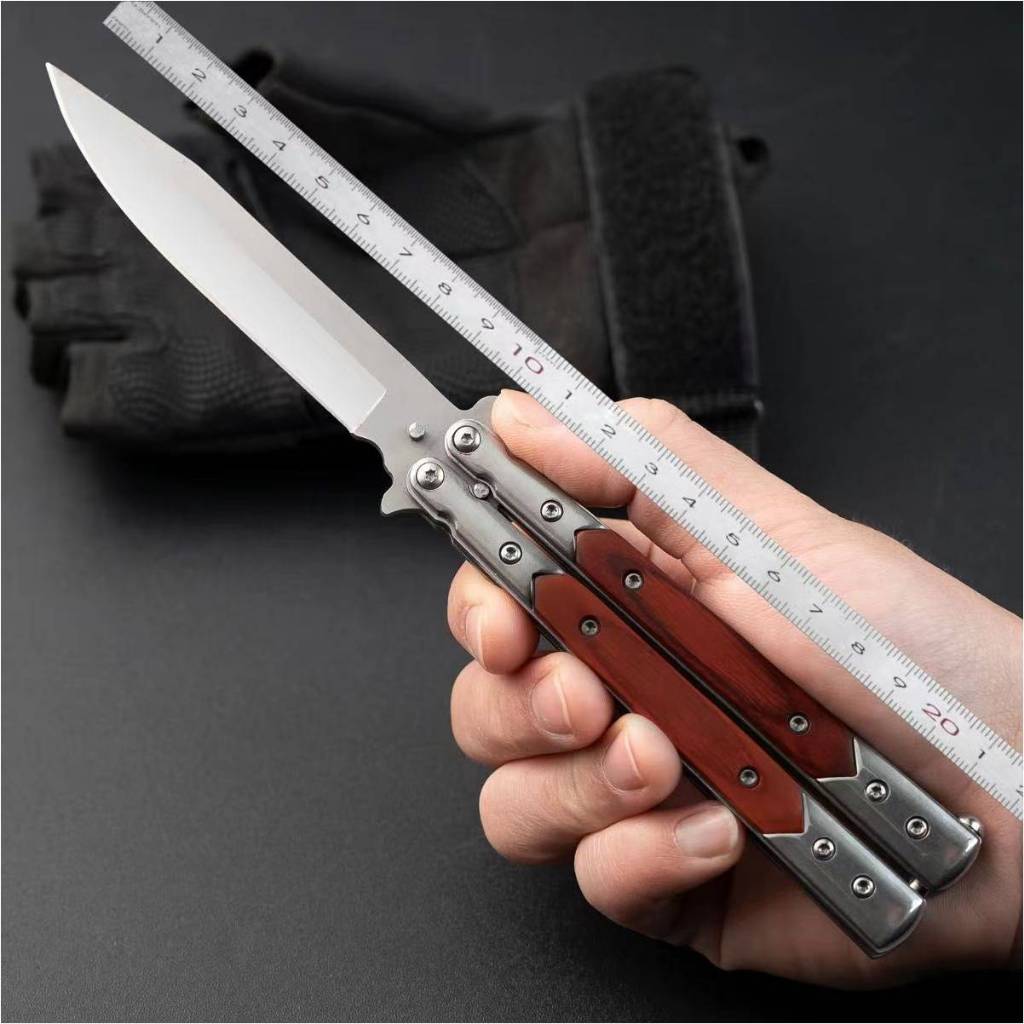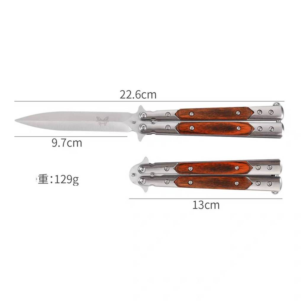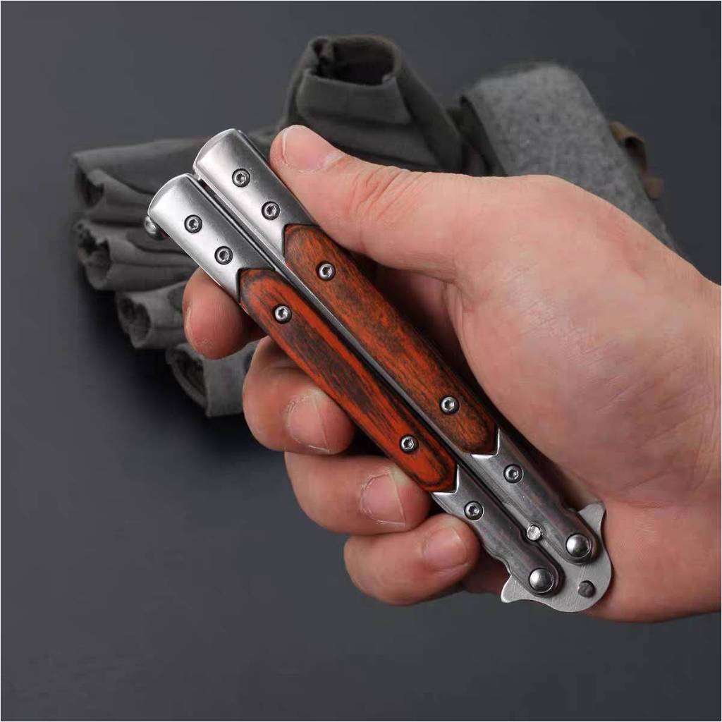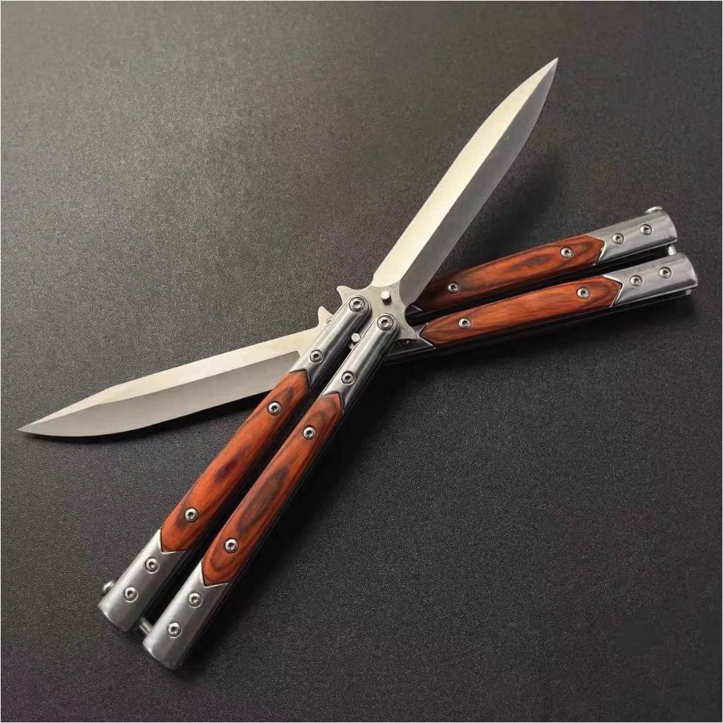 (藏鋒)蝴蝶刀 蝴蝶刀 甩刀 折疊刀 練習刀 未開刃 鑲木柄 鑲嵌木柄 彩木柄