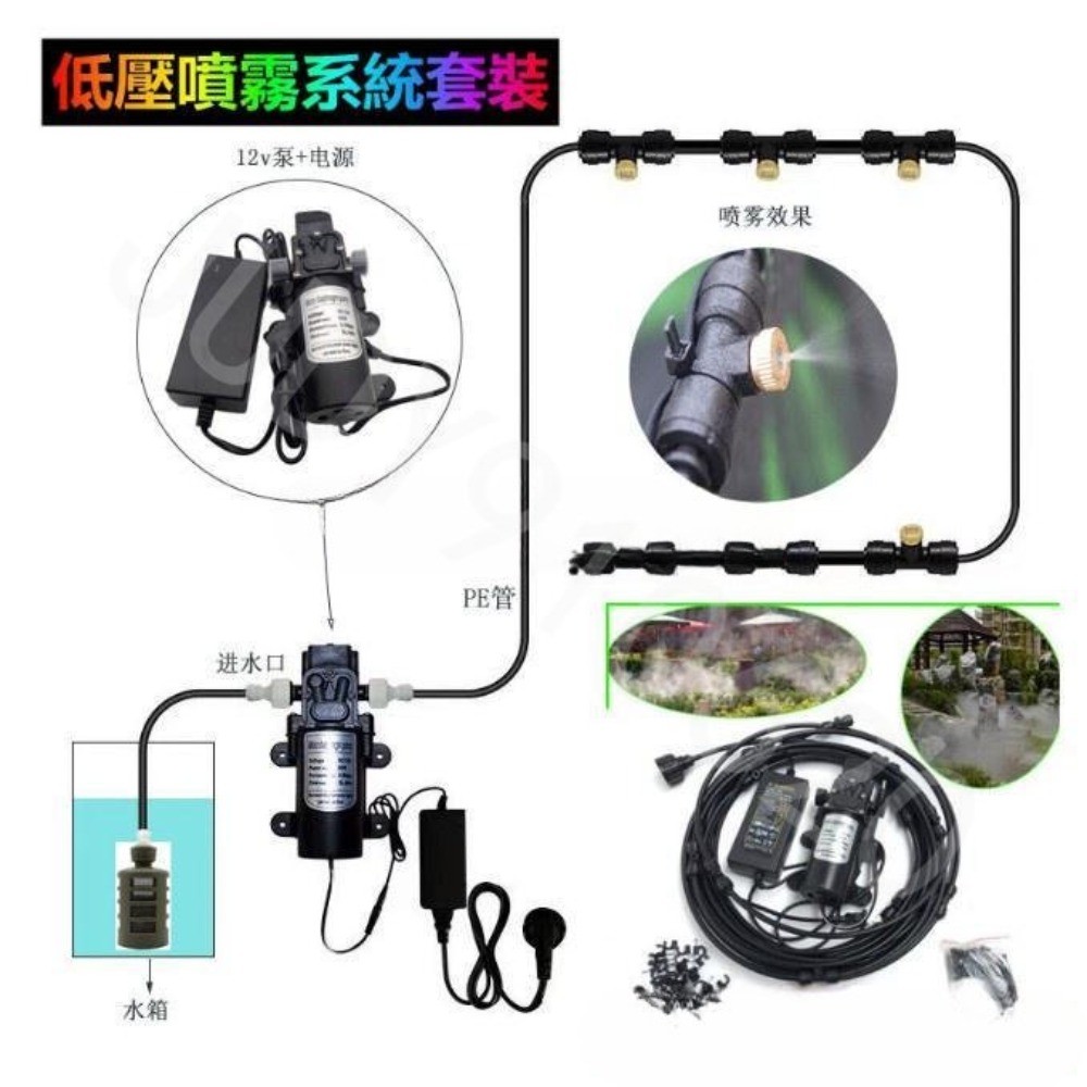 台灣出貨水霧機 人造霧聚會水吧 降溫噴霧 室內降溫 12V低壓降溫 噴霧 降溫 系統 造霧機