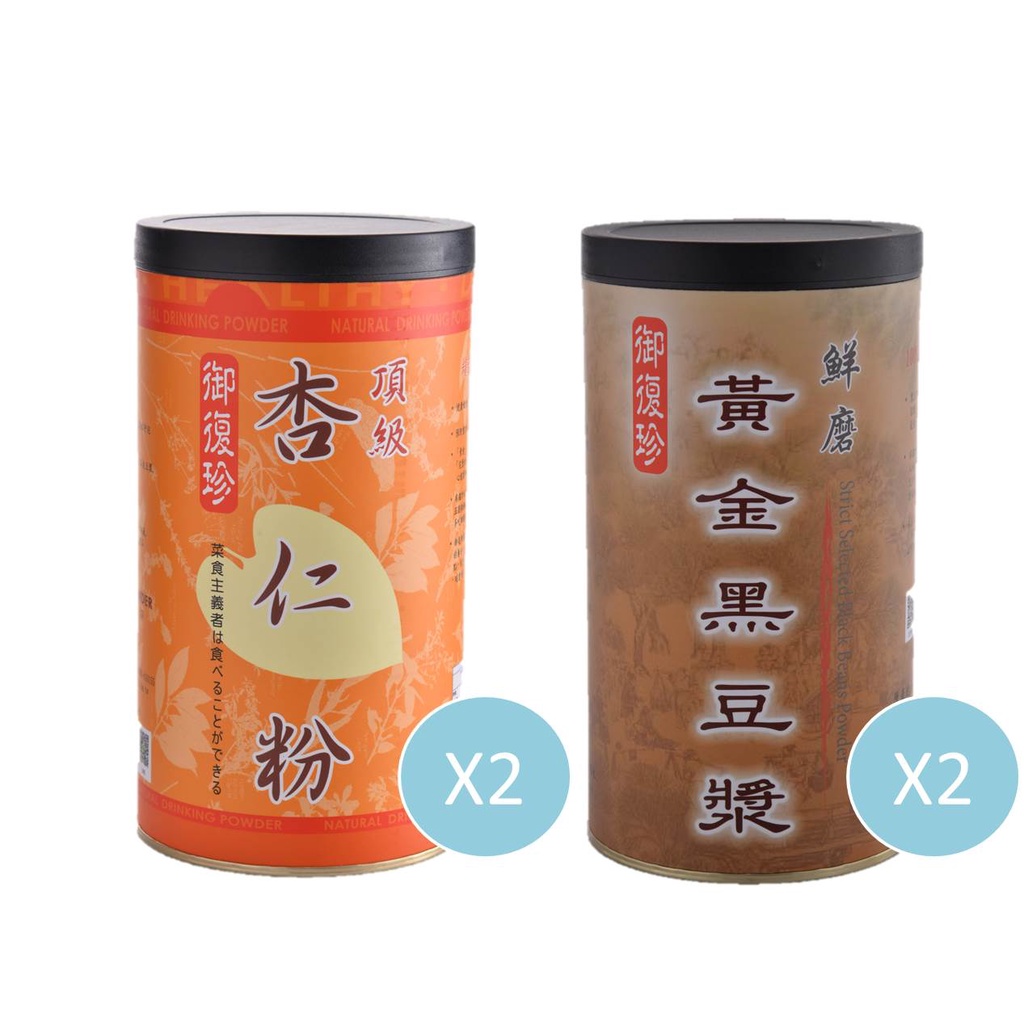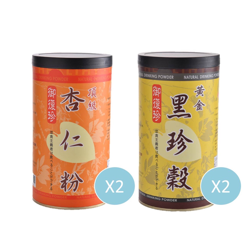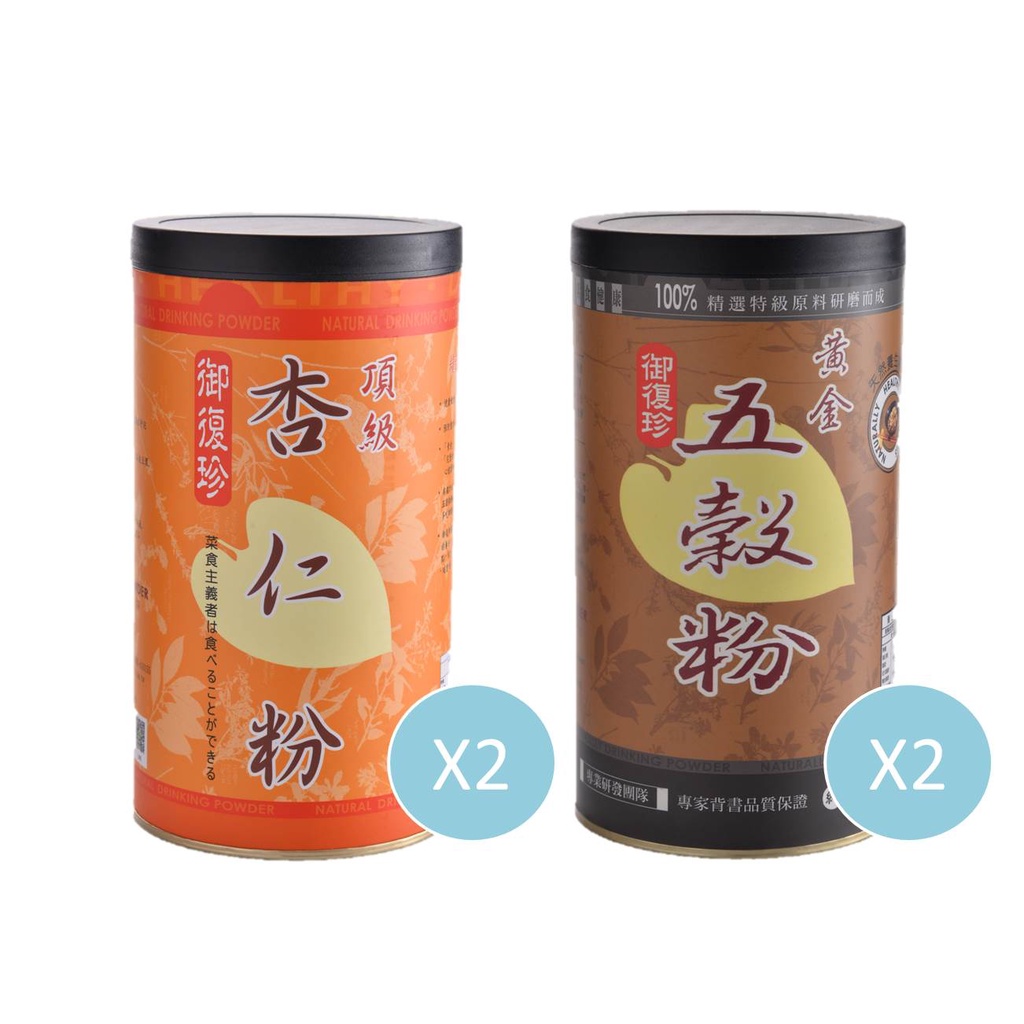 【御復珍】熱銷組合專區 頂級杏仁、山藥薏仁、黃金豆漿粉、黑豆漿粉、麵茶粉、五穀粉、冷泡芝麻黑豆 四罐組合(純素食)