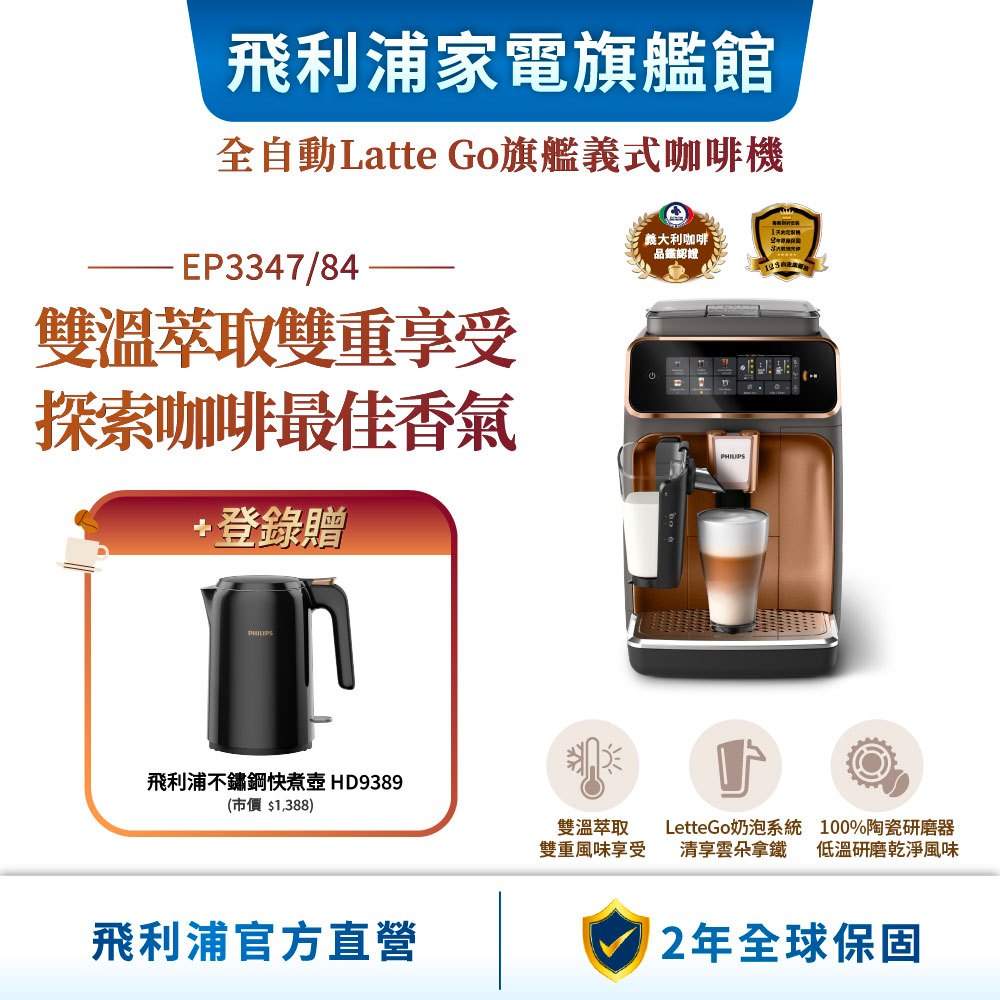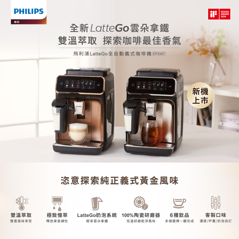 【PHILIPS 飛利浦】 LatteGo全自動義式咖啡機 (EP3347/84)(銀/金)| 精品咖啡