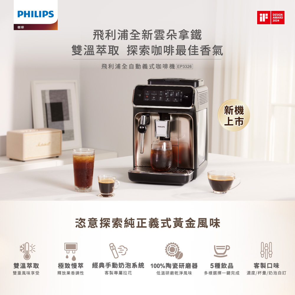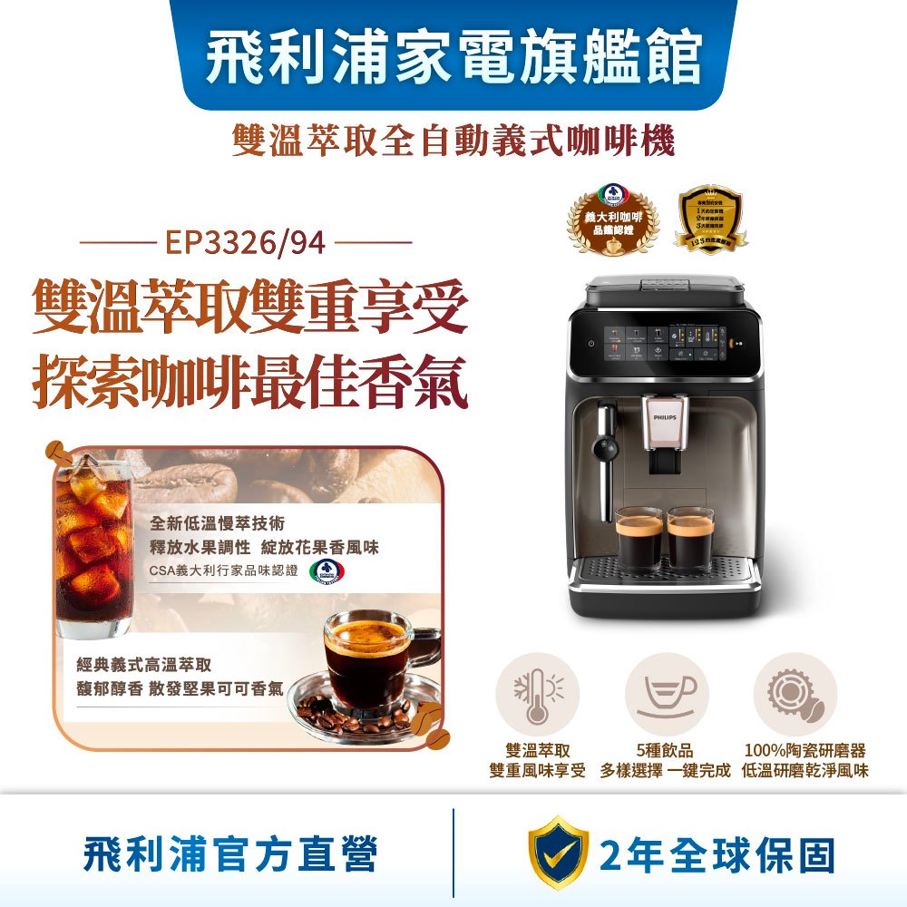 【PHILIPS 飛利浦】雙溫萃取全自動義式咖啡機 經典銀(EP3326/94)| 精品咖啡