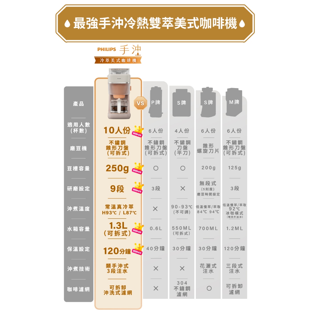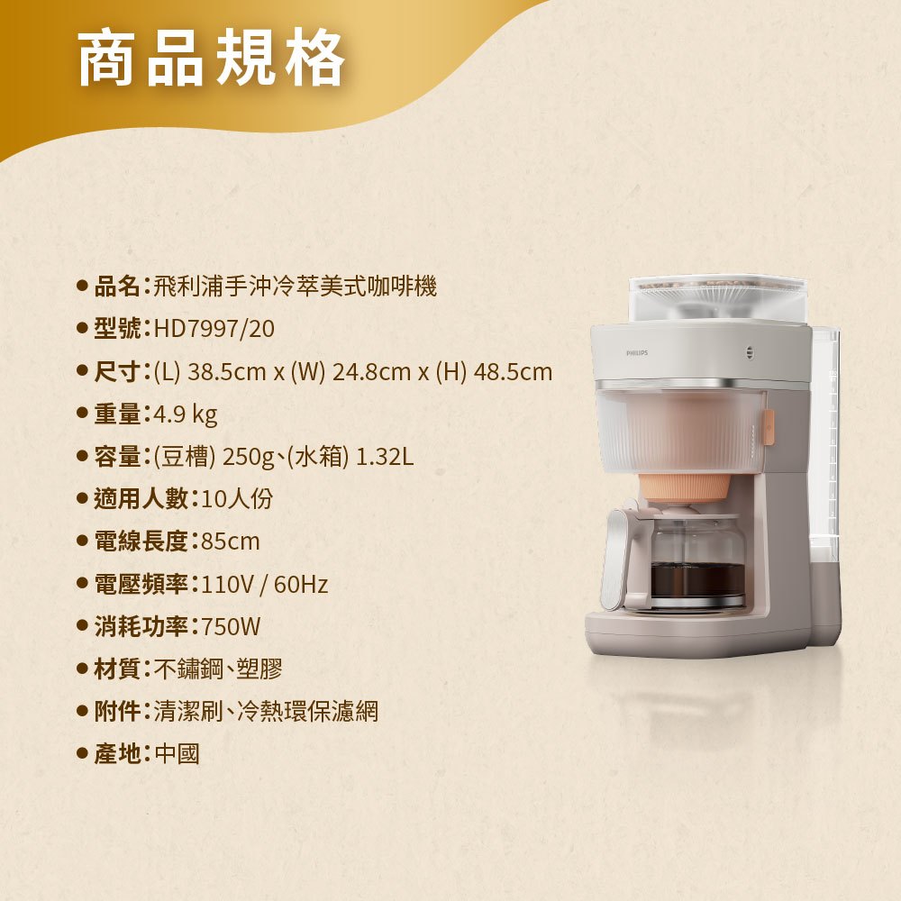 【PHILIPS 飛利浦】2026年度新機!手沖冷熱雙萃美式咖啡機 HD7997/20 | 精品咖啡