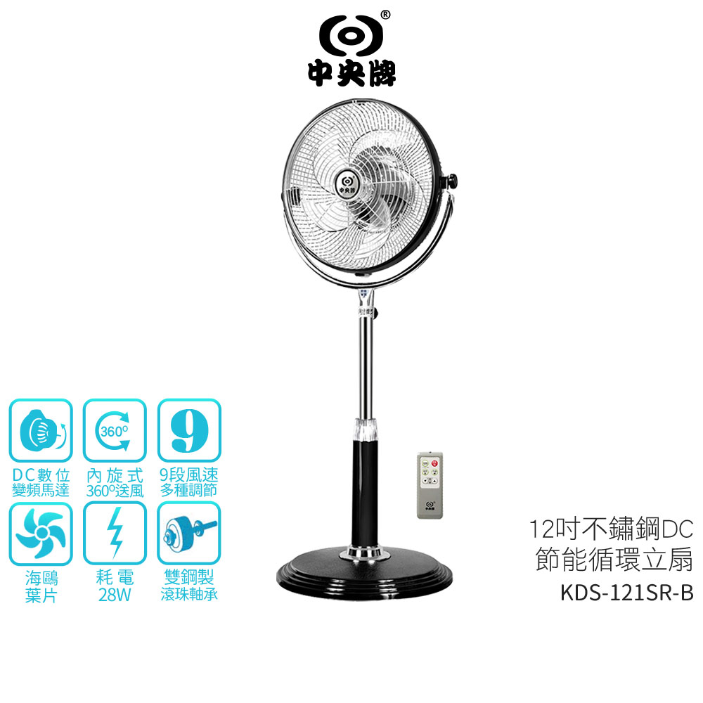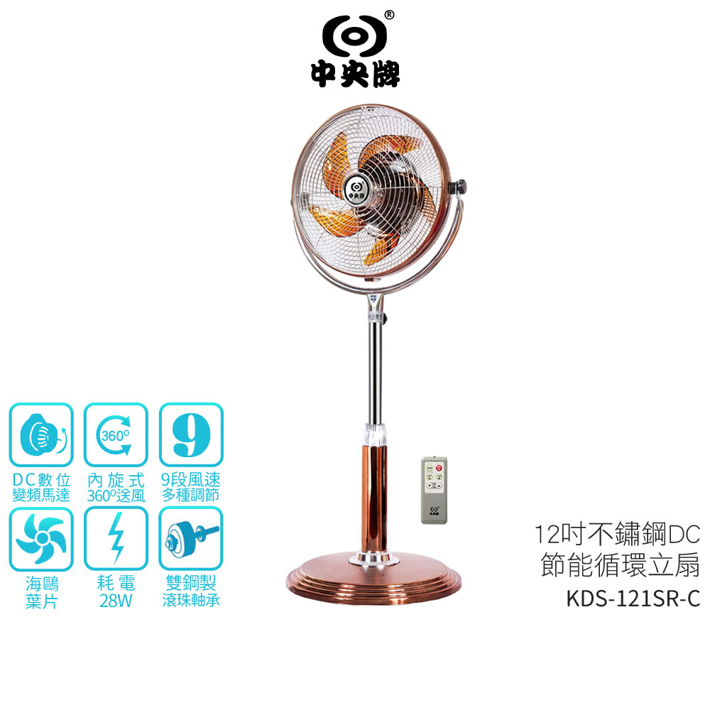 【中央牌】12吋不銹鋼DC節能內旋循環立扇 KDS-121SR / KDS-121SR-W 絢麗白