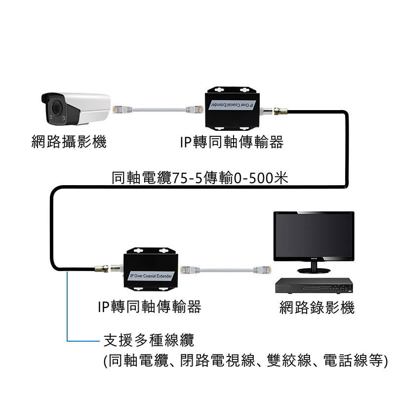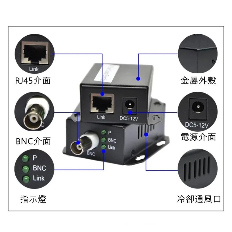 IP 網路轉同軸傳輸器 500米乙太網路 RJ45 轉換器 監控攝影機網路訊號延長器 RJ45轉BNC傳輸