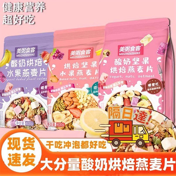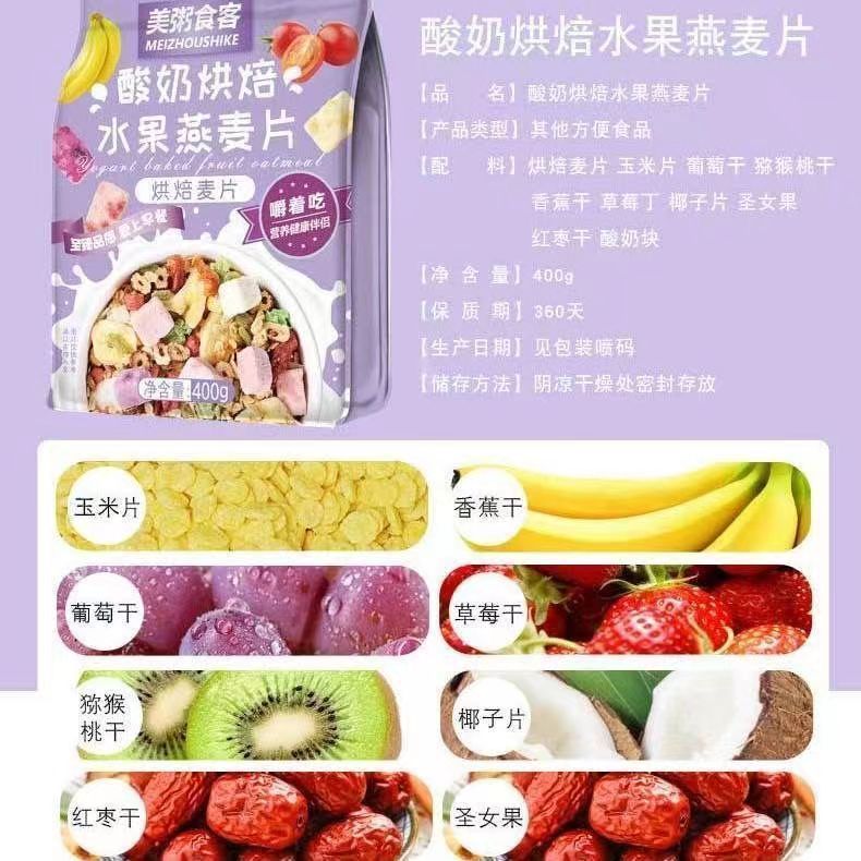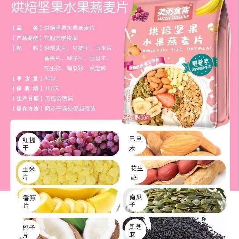 隔日送達🔥美粥食客燕麥片 烘焙堅果水果燕麥片 水果堅果燕麥片400g/包 蘋果香蕉牛乳燕麥片果粒麥片 早餐麥片 烘培麥片