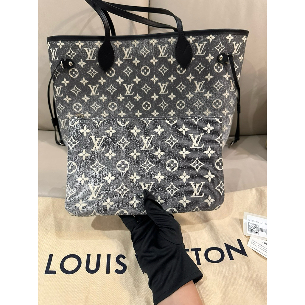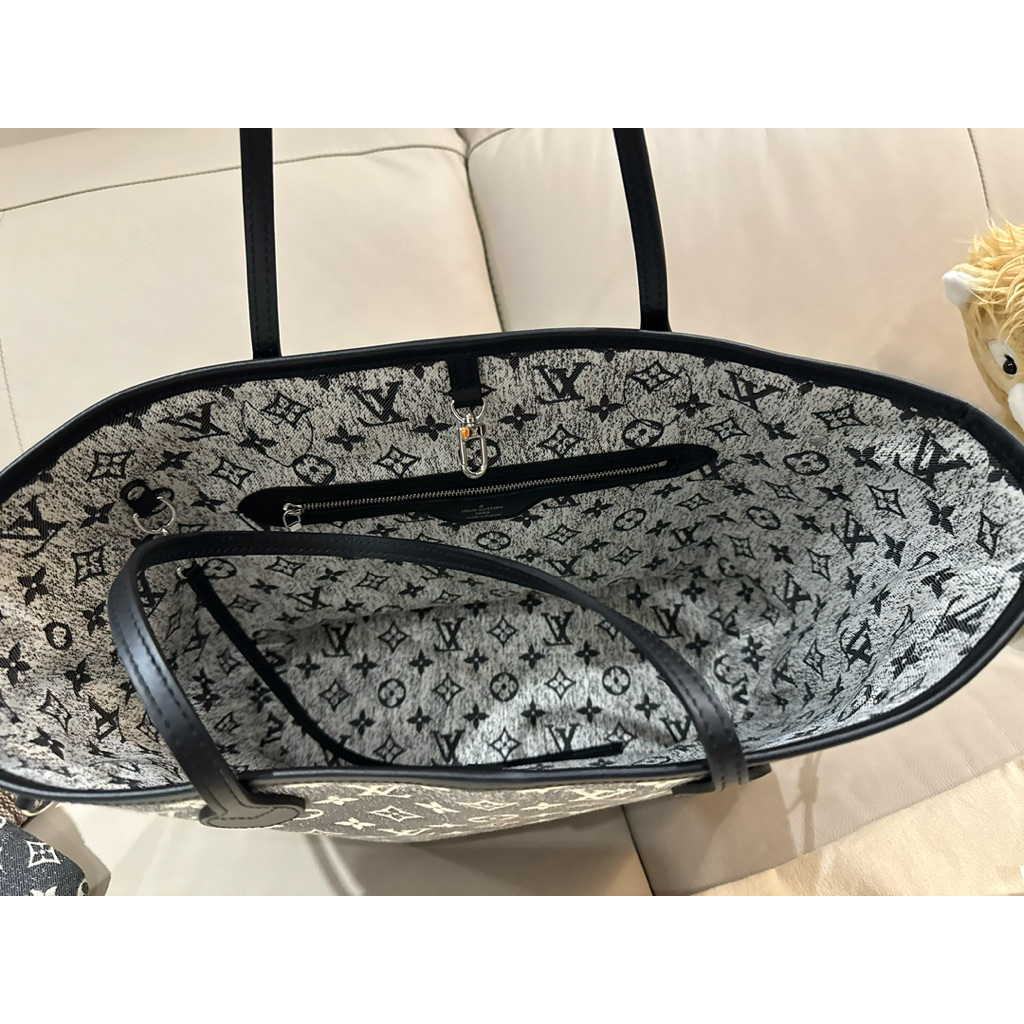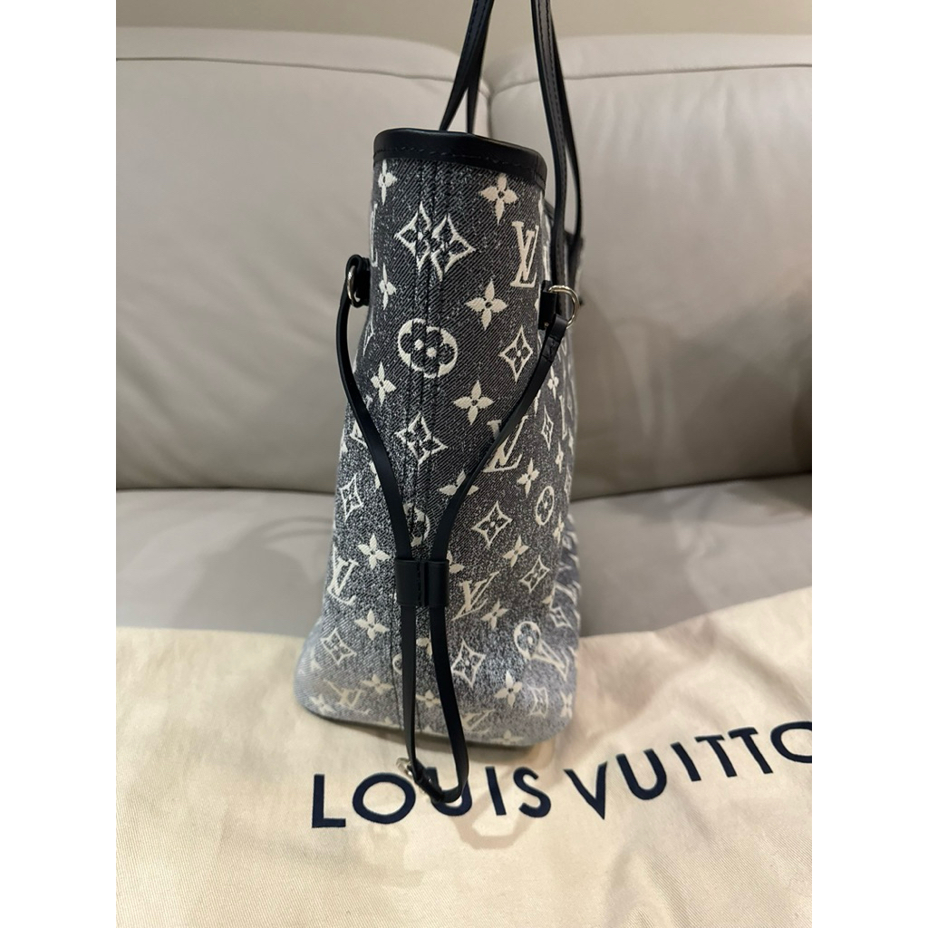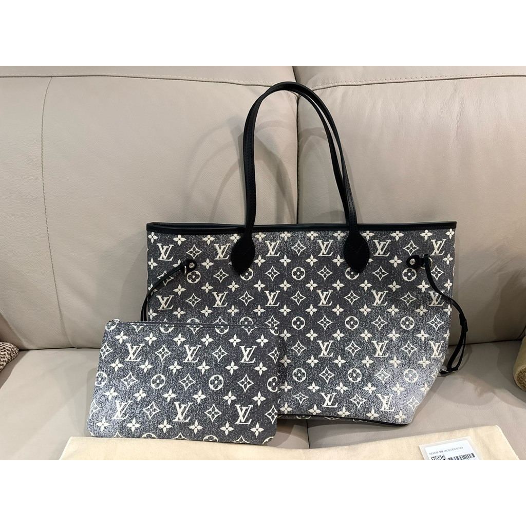 LV 路易威登 牛仔刷色Neverfull tote bag MM 托特包/黑色單寧牛仔布/特殊款/全新閒置美品