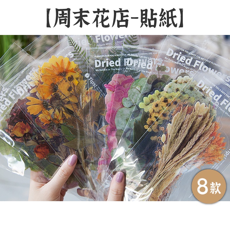 RAYRAYGO 陌境 貼紙包【周末花店系列】8款 PET 大尺寸 透明防水 植物貼紙 花卉貼紙 手帳裝飾 拼貼素材