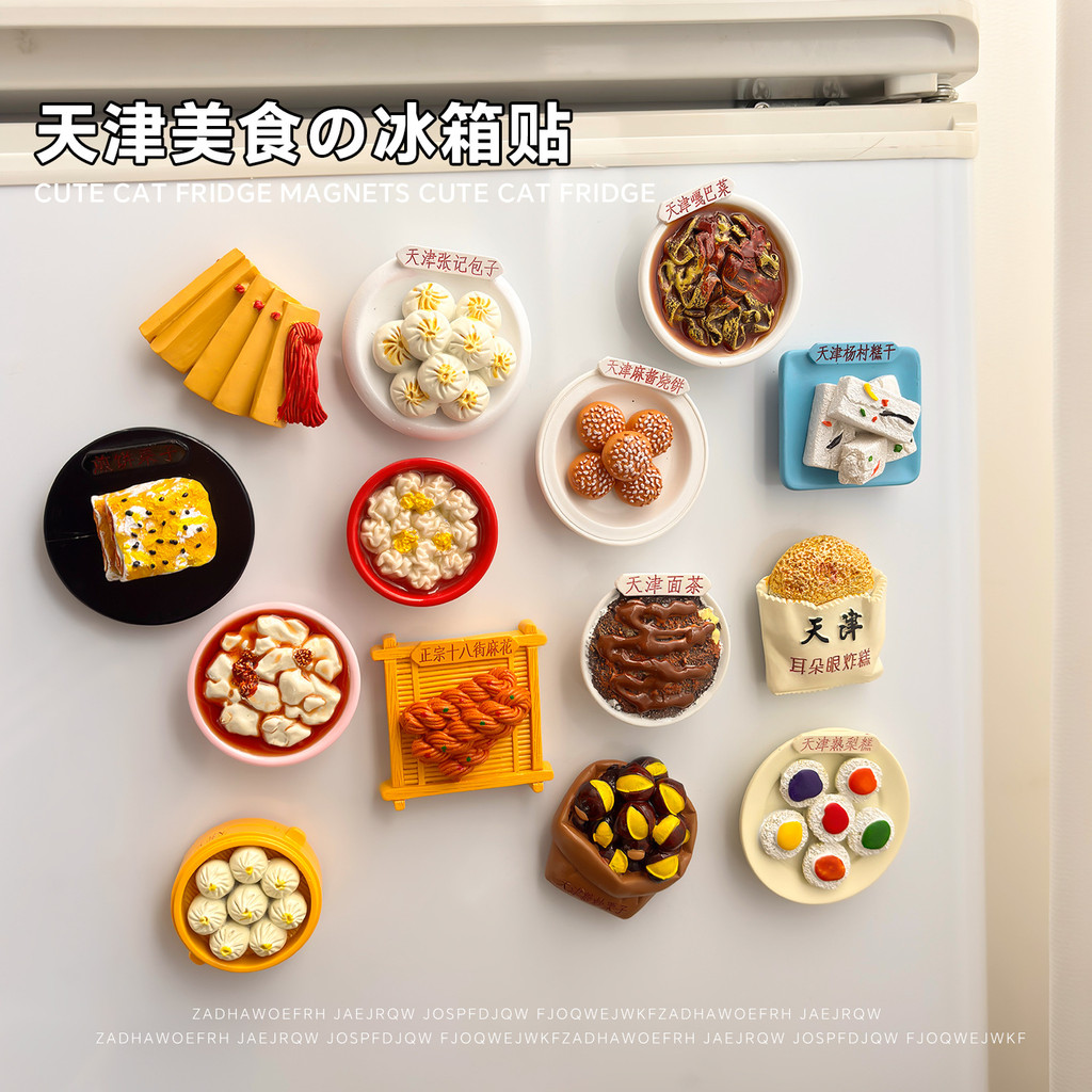 馬年 冰箱貼 磁鐵貼 2026 特色小喫冰箱貼天津美食磁貼3D仿真文創旅遊紀念品食玩磁貼裝飾品