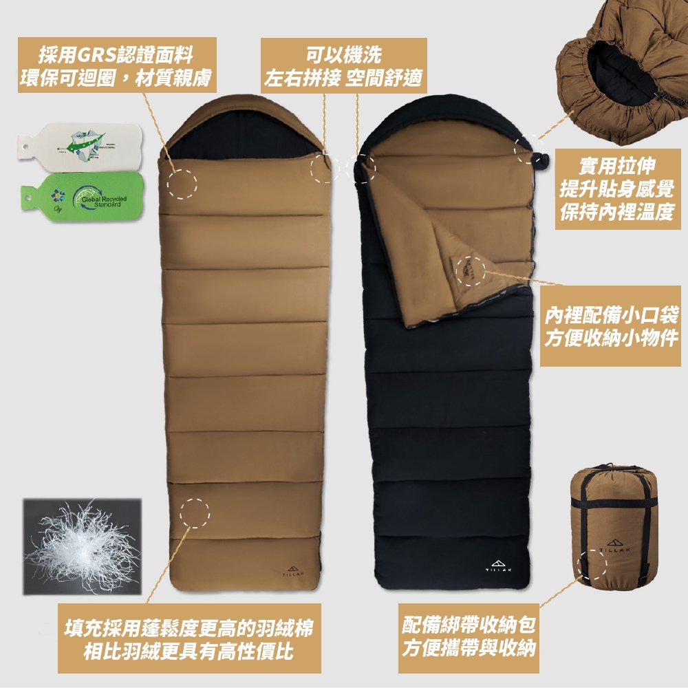 【TILLAK】睡袋 露營睡袋 四季睡袋 登山睡袋 輕量睡袋 保暖睡袋 信封睡袋 拼接睡袋
