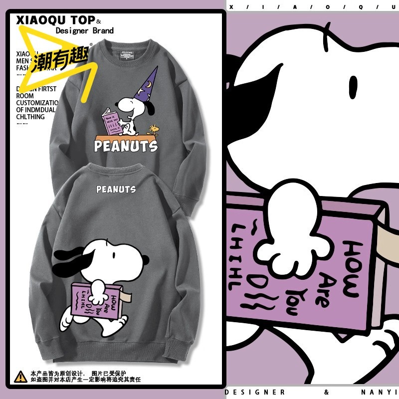 史努比聯名週邊卡通印花 🔥重磅秋冬衛衣 男女休閒 寬鬆大尺碼 情侶 園領大学T 青少年 長袖T恤 百搭外套 新品上衣